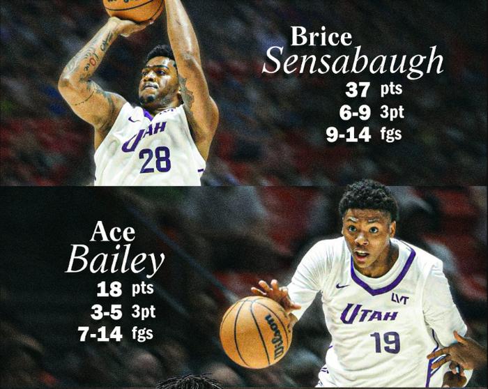 今天出战27分钟,14中9,三分9中6,罚球14中13,拿到37分4篮板1助攻2抢断,命中率64.3%,三分命中率66.7%,创下爵士队个人夏季联赛得分纪录。