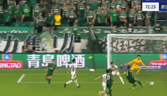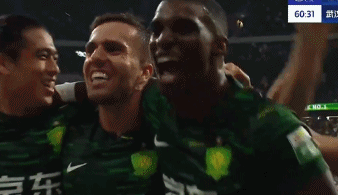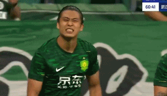 法比奥、林良铭连续妙传,张玉宁铲射破门。倒地铲射时,张玉宁左膝已经受伤。起身之后,张玉宁握拳庆祝,兴奋的法比奥跳到了张玉宁的身上,“不堪重负”的张玉宁随即倒在了草坪上。